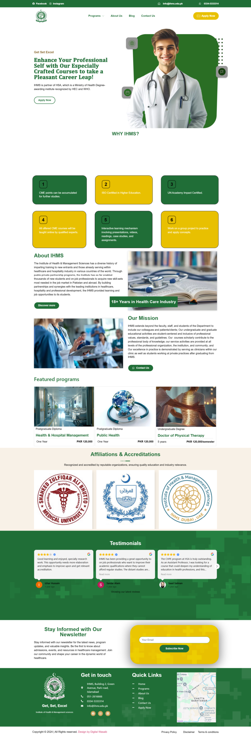 Established in the heart of Pakistan’s capital, the IHMS Islamabad campus (IHMS.edu.pk) stands as the founding pillar of the Institute of Health Management Sciences. For years, our Islamabad campus has been dedicated to bridging the gap between medical theory and clinical practice, producing a generation of healthcare leaders who serve both locally and globally.